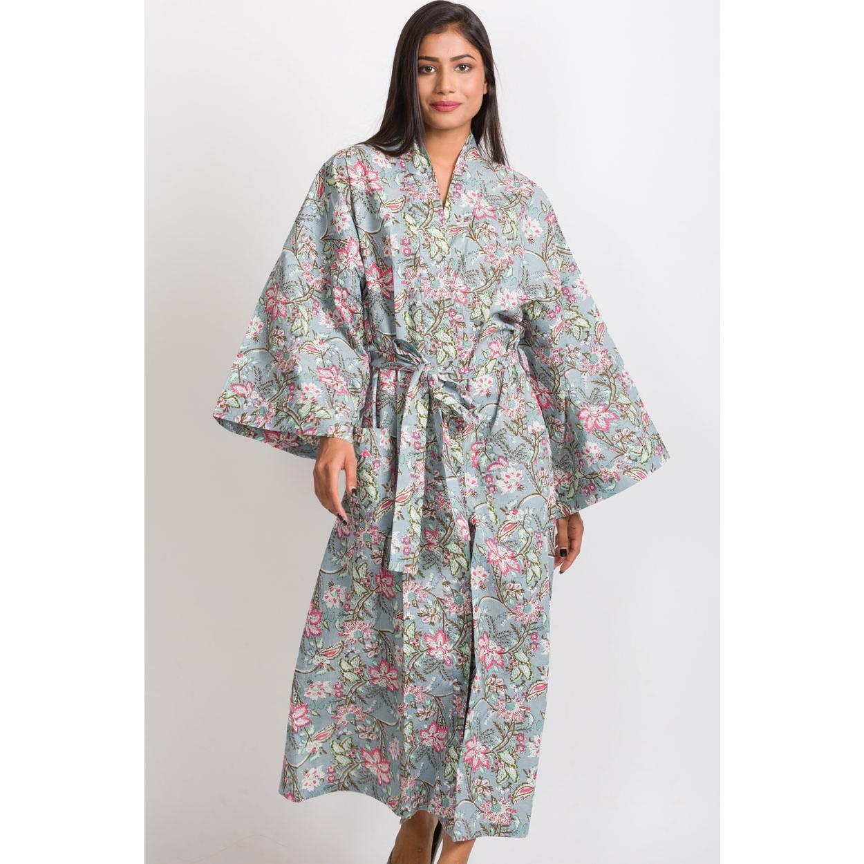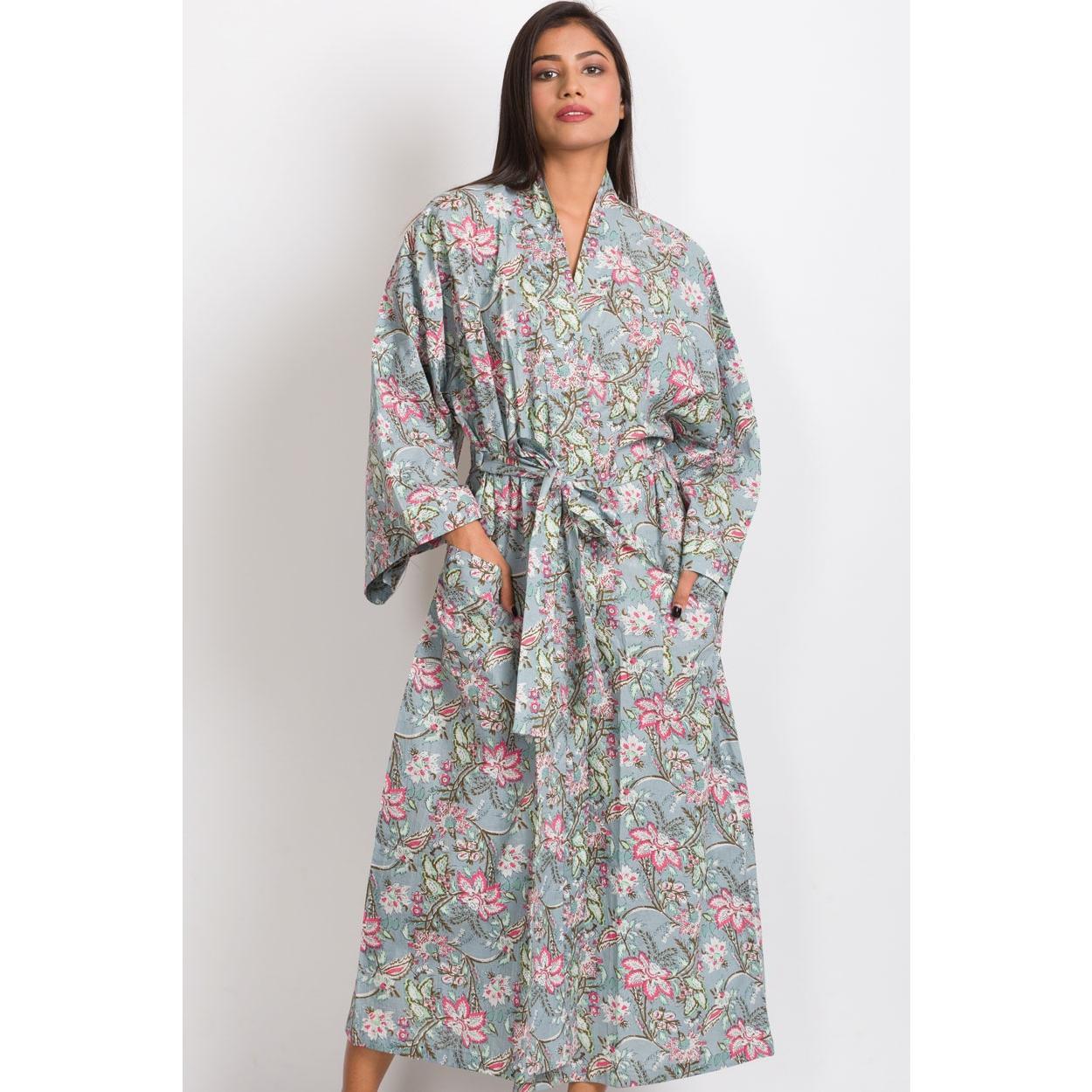 Our gorgeous Blue Poppies Long Kimono Robe is luxuriously comfortable. The design highlights vibrant and unique artistic prints on 100% buttery soft cotton. Highly skilled artisans use eco-friendly dyes to make the prints and colors come alive on the fabric.